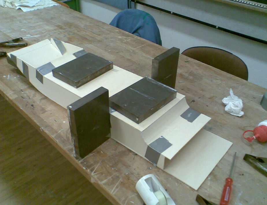 Mit dem Isolationsmaterial " Jacodur " wurde ein Positiv gefertigt für die Fahrgastzelle.