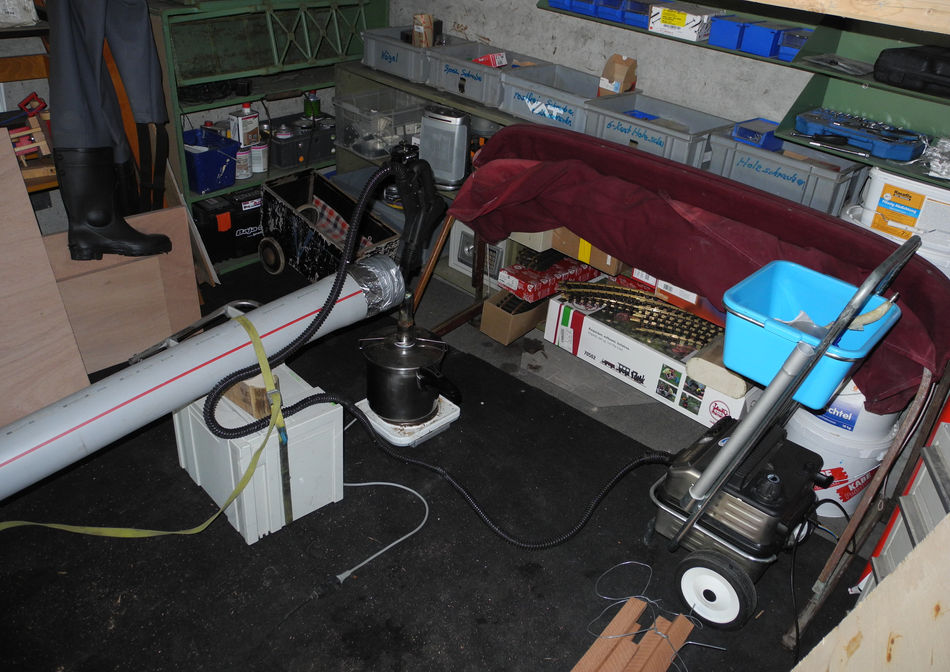 Aber zuerst werde ich jetzt die Holzkanten in meiner eigens gefertigten Bedampfungsanlage ca. 2 1/2 Stunden behandeln.
