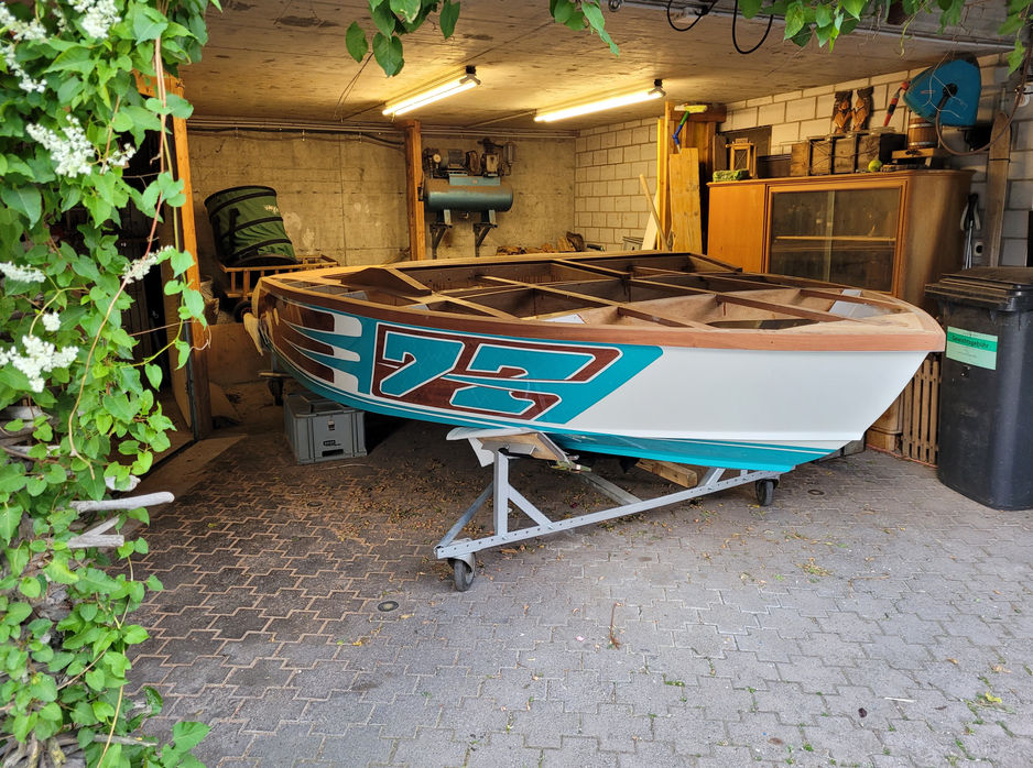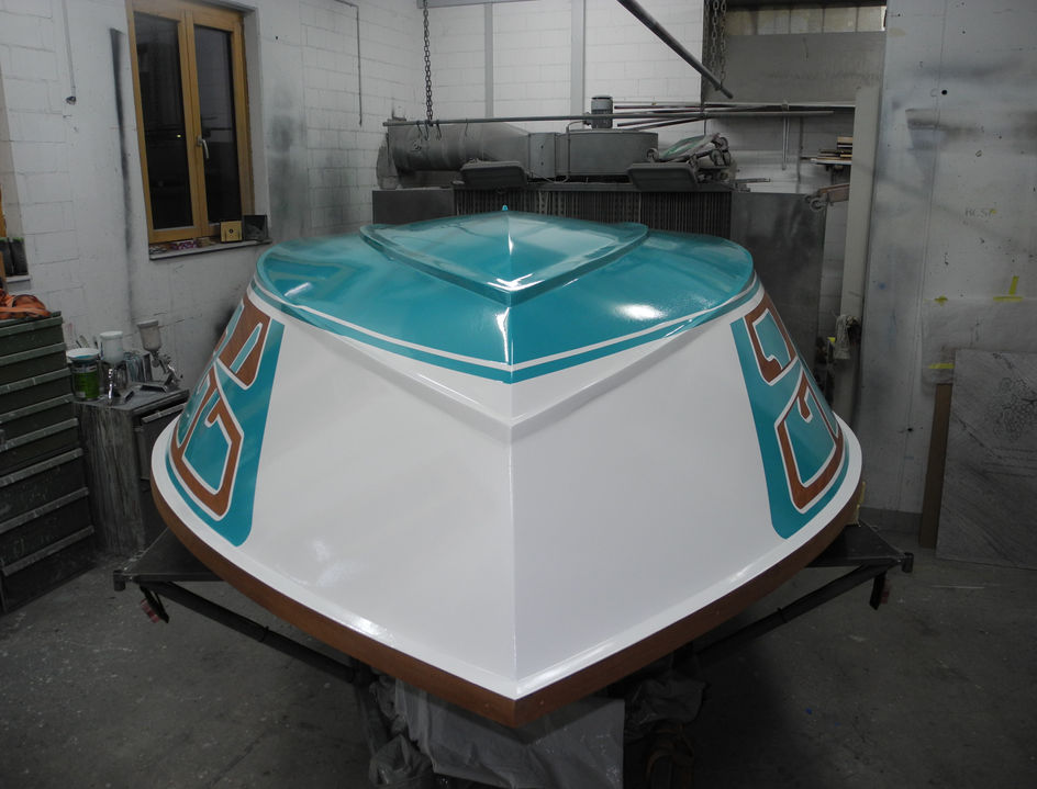 Nach der Lackierung in einer Einbrennkabine, konnte ich mein Boot wieder in