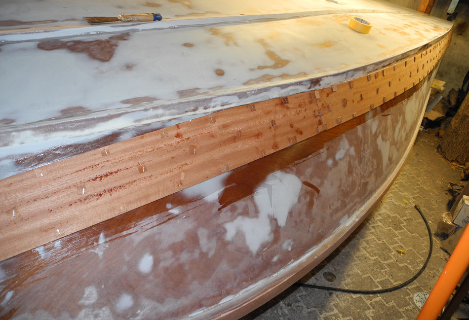 Der Übergang vom Mahagoni zur Bootsunterseite wurde noch angeglichen.