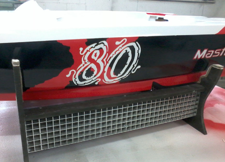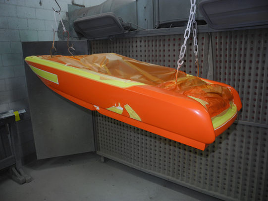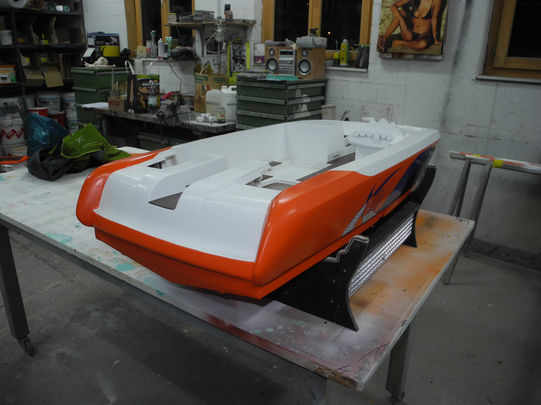 Der Rumpf ist auch schon in der Lackiererei und das aufwendige Designe