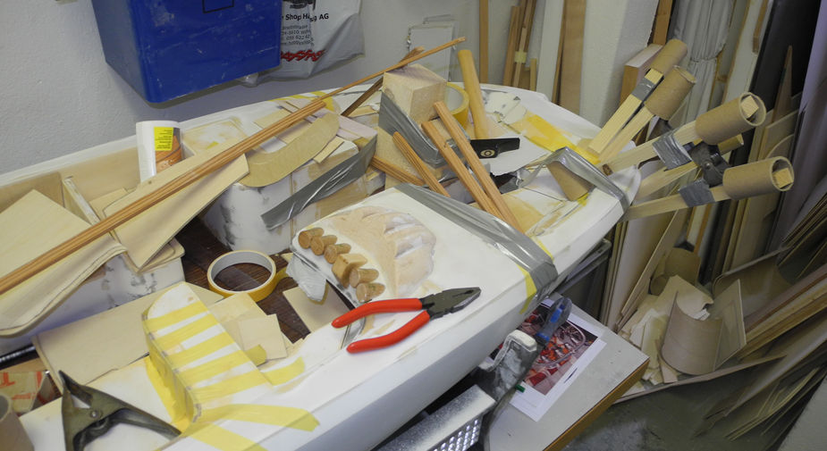 Die Armaturen wurden aus Balsaholz modelliert und mit Epoxydharz verstärkt.