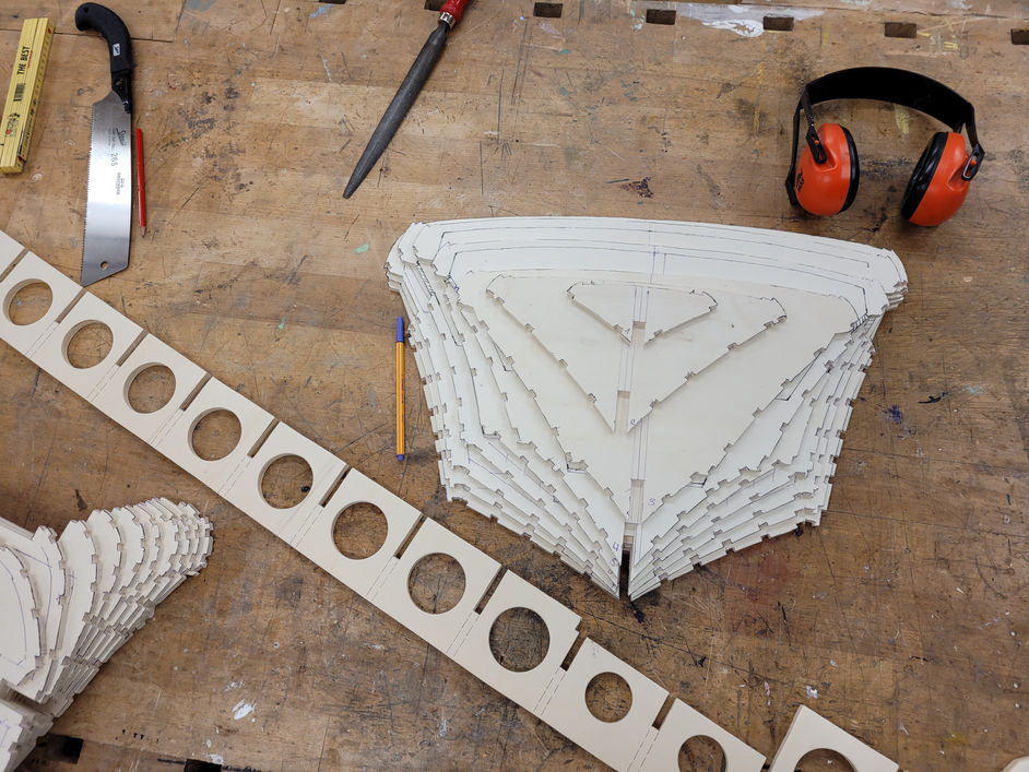 Mit dem Spanntenbau entsteht schon mal eine Form von einer Yacht.